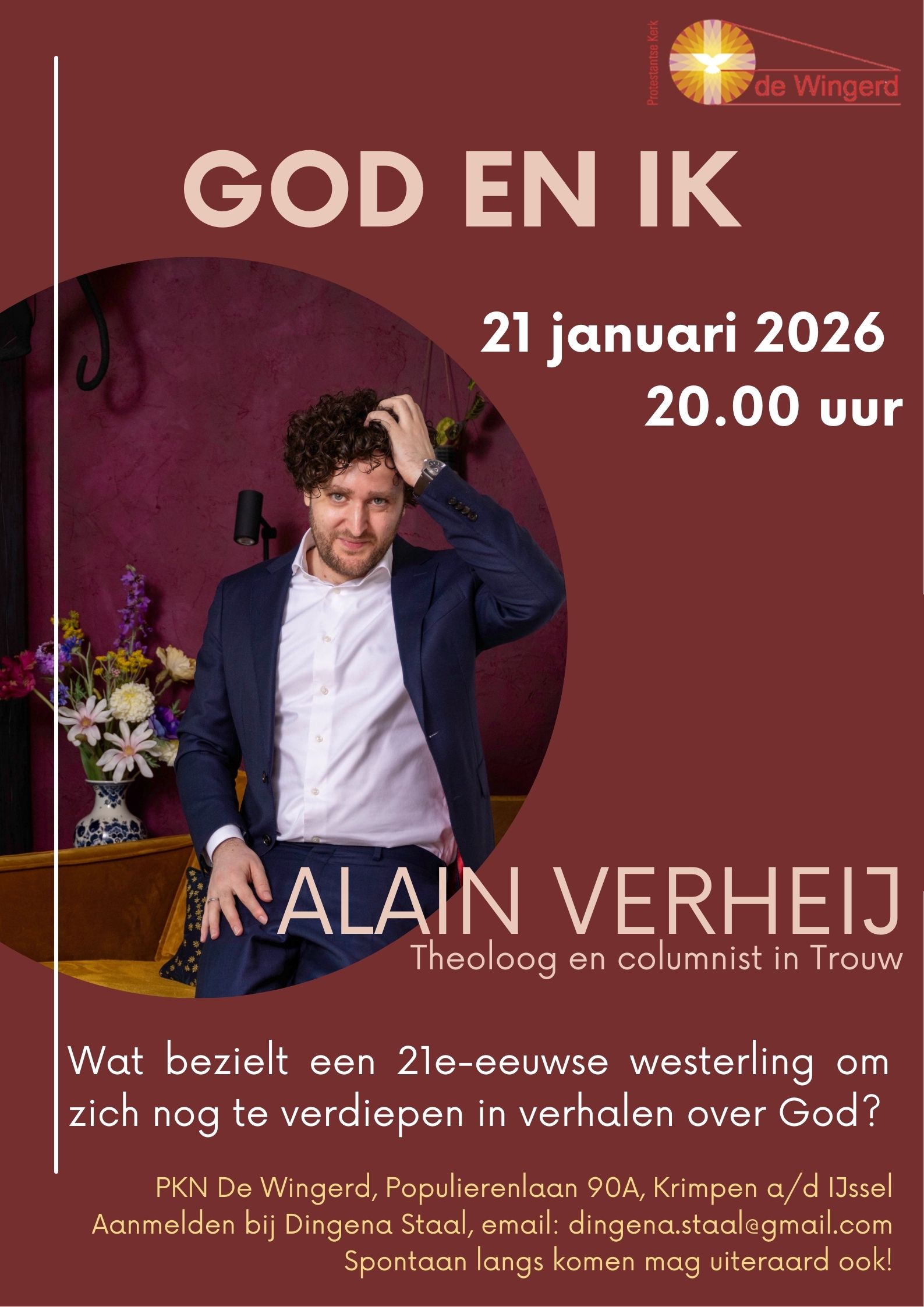 Graag aanmelden bij Dingena Staal email: dingena.staal@gmail.com